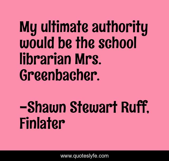 This page presents the quote "My ultimate authority would be the school librarian Mrs. Greenbacher.". Author of this quote is Shawn Stewart Ruff, Finlater. This quote is about african-american-lgbtq-ya, librarians, lgbtq-ya, young-adult-fiction, lgbtq-ya-fiction, librarian, young-adults, young-adult-novel,.