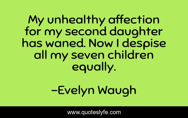 This page presents the quote "My unhealthy affection for my second daughter has waned. Now I despise all my seven children equally.". Author of this quote is Evelyn Waugh. .