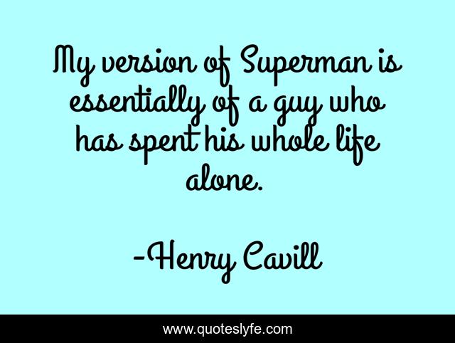 This page presents the quote "My version of Superman is essentially of a guy who has spent his whole life alone.". Author of this quote is Henry Cavill. This quote is about life, guy, superman,.