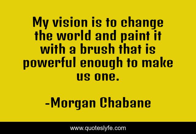 This page presents the quote "My vision is to change the world and paint it with a brush that is powerful enough to make us one.". Author of this quote is Morgan Chabane. This quote is about mission, dreams, ambition,.