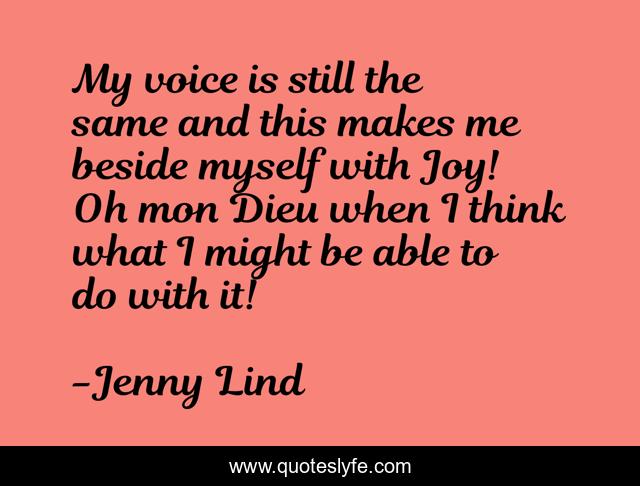 This page presents the quote "My voice is still the same and this makes me beside myself with Joy! Oh mon Dieu when I think what I might be able to do with it!". Author of this quote is Jenny Lind. This quote is about positive, confidence,.