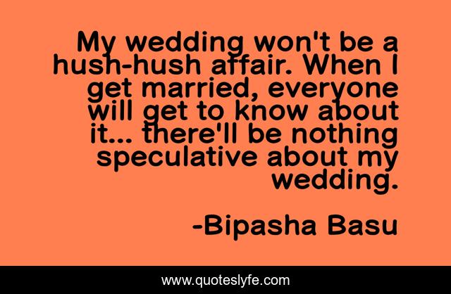 This page presents the quote "My wedding won't be a hush-hush affair. When I get married, everyone will get to know about it... there'll be nothing speculative about my wedding.". Author of this quote is Bipasha Basu. This quote is about nothing, everyone,.