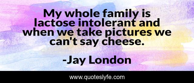 This page presents the quote "My whole family is lactose intolerant and when we take pictures we can't say cheese.". Author of this quote is Jay London. This quote is about cheese, pictures,.