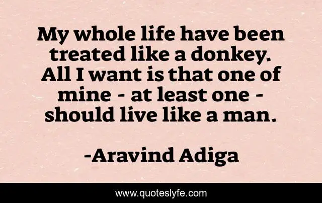 This page presents the quote "My whole life have been treated like a donkey. All I want is that one of mine - at least one - should live like a man.". Author of this quote is Aravind Adiga. .