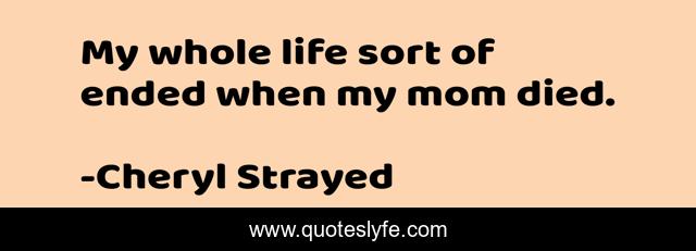 This page presents the quote "My whole life sort of ended when my mom died.". Author of this quote is Cheryl Strayed. This quote is about life, whole, died,.