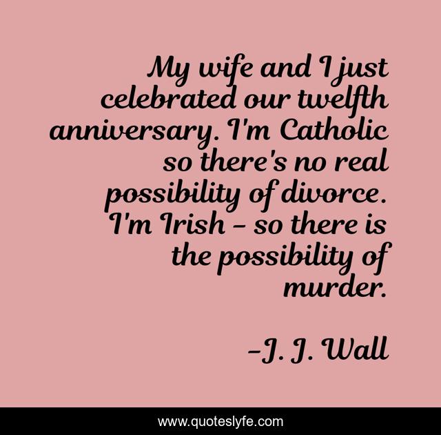 This page presents the quote "My wife and I just celebrated our twelfth anniversary. I'm Catholic so there's no real possibility of divorce. I'm Irish - so there is the possibility of murder.". Author of this quote is J. J. Wall. This quote is about love, marriage, affection,.