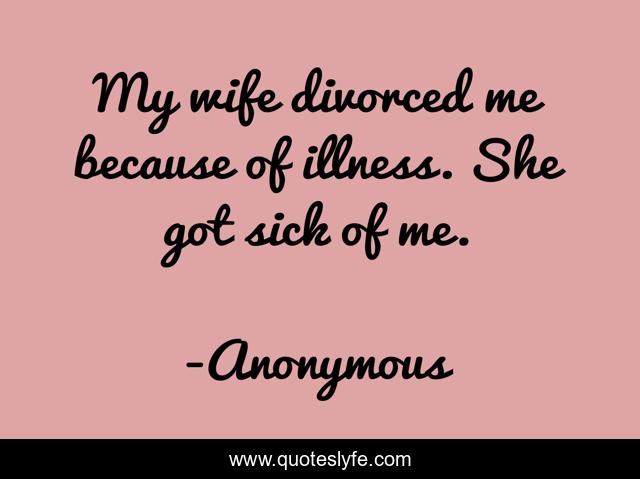 This page presents the quote "My wife divorced me because of illness. She got sick of me.". Author of this quote is Anonymous. This quote is about love, marriage, affection,.