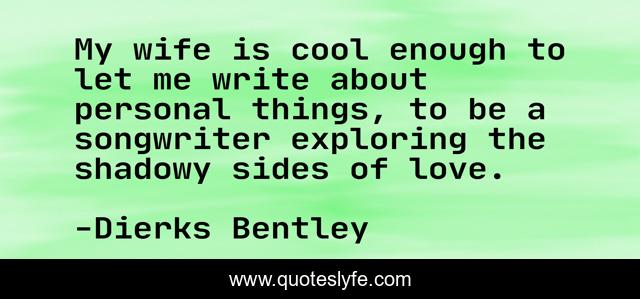 This page presents the quote "My wife is cool enough to let me write about personal things, to be a songwriter exploring the shadowy sides of love.". Author of this quote is Dierks Bentley. This quote is about me, love, affection, wife,.