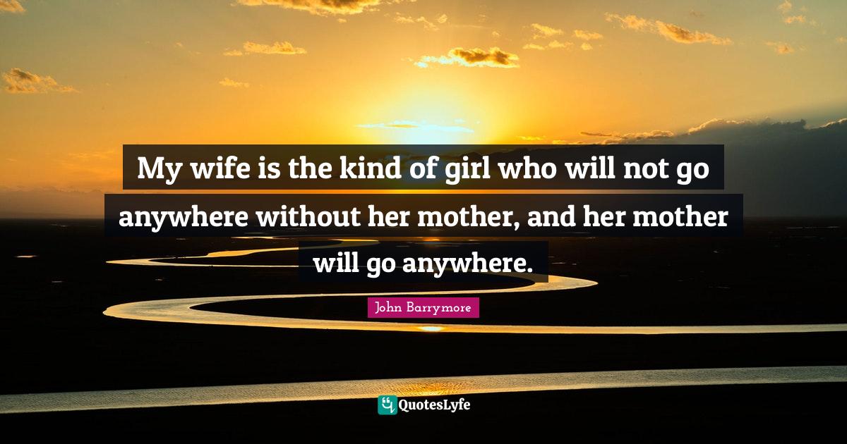 This page presents the quote "My wife is the kind of girl who will not go anywhere without her mother, and her mother will go anywhere.". Author of this quote is John Barrymore. This quote is about mother, wife, my wife, girl, kind of girl,.