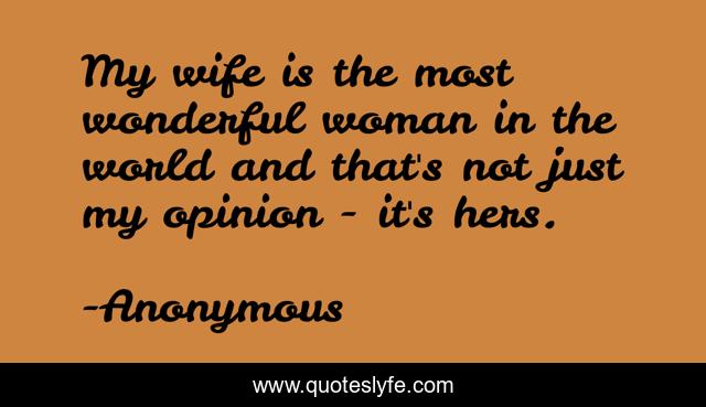 "Anonymous Quotes." Quoteslyfe.com, 2025. Sun. 07 Dec. 2025. <https://www.quoteslyfe.com/quote/My-wife-is-the-most-wonderful-woman-266135>.