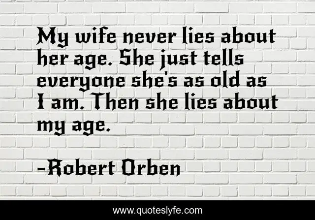 "Robert Orben Quotes." Quoteslyfe.com, 2025. Sun. 07 Dec. 2025. <https://www.quoteslyfe.com/quote/My-wife-never-lies-about-her-age-260691>.