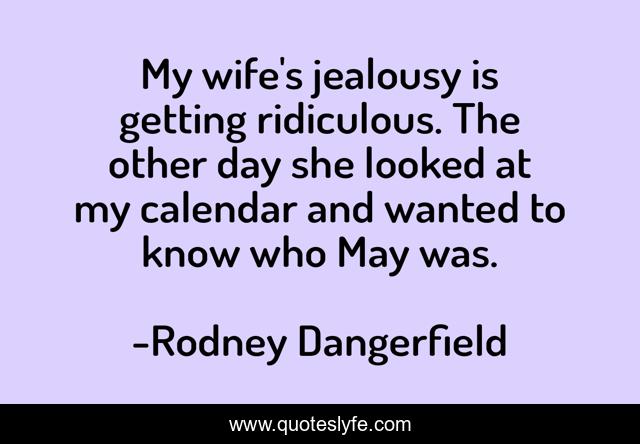 This page presents the quote "My wife's jealousy is getting ridiculous. The other day she looked at my calendar and wanted to know who May was.". Author of this quote is Rodney Dangerfield. This quote is about day, wife,.