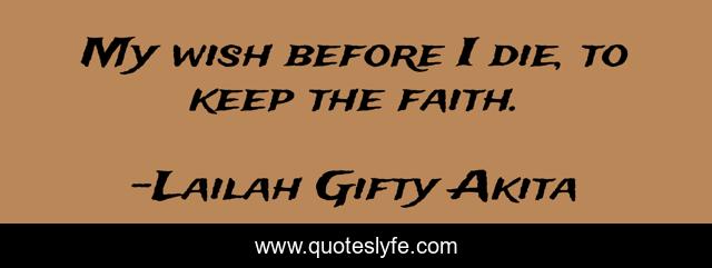 This page presents the quote "My wish before I die, to keep the faith.". Author of this quote is Lailah Gifty Akita. This quote is about faith, faith-in-yourself, faithfulness, faithful, faith-reason, wishing-well, wish, dreams, wishing-away-things,.