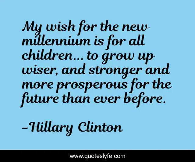 This page presents the quote "My wish for the new millennium is for all children... to grow up wiser, and stronger and more prosperous for the future than ever before.". Author of this quote is Hillary Clinton. This quote is about stronger, children, grow,.