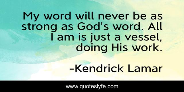 This page presents the quote "My word will never be as strong as God's word. All I am is just a vessel, doing His work.". Author of this quote is Kendrick Lamar. This quote is about god, strong,.