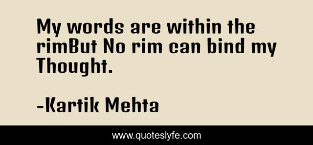 This page presents the quote "My words are within the rimBut No rim can bind my Thought.". Author of this quote is Kartik Mehta. This quote is about thought, words,.