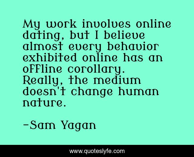 "Sam Yagan Quotes." Quoteslyfe.com, 2025. Fri. 05 Dec. 2025. <https://www.quoteslyfe.com/quote/My-work-involves-online-dating-but-I-321336>.