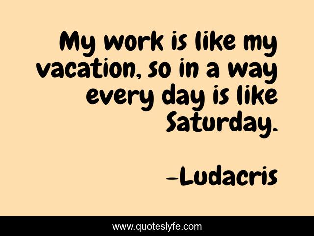 This page presents the quote "My work is like my vacation, so in a way every day is like Saturday.". Author of this quote is Ludacris. This quote is about every day, day, vacation,.