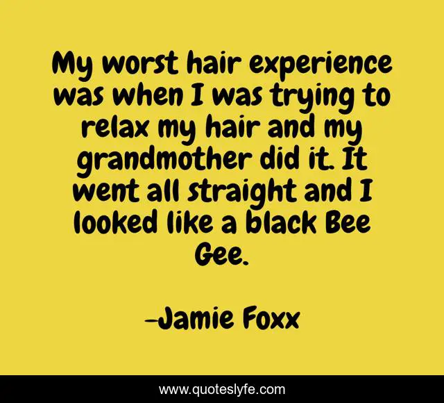 This page presents the quote "My worst hair experience was when I was trying to relax my hair and my grandmother did it. It went all straight and I looked like a black Bee Gee.". Author of this quote is Jamie Foxx. This quote is about hair, black, relax,.