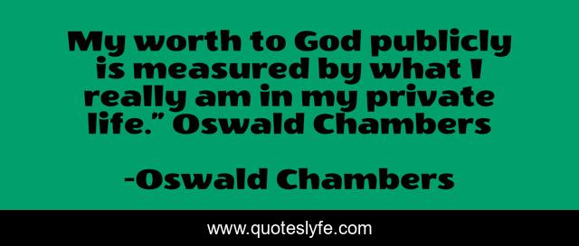 "Oswald Chambers Quotes." Quoteslyfe.com, 2025. Mon. 08 Dec. 2025. <https://www.quoteslyfe.com/quote/My-worth-to-God-publicly-is-measured-255190>.