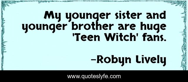This page presents the quote "My younger sister and younger brother are huge 'Teen Witch' fans.". Author of this quote is Robyn Lively. This quote is about sister, brother, fans,.