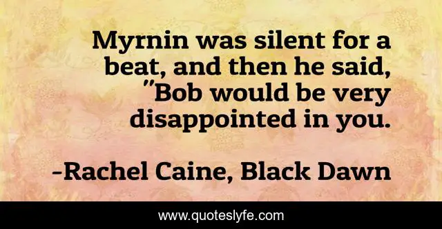 This page presents the quote "Myrnin was silent for a beat, and then he said, "Bob would be very disappointed in you.". Author of this quote is Rachel Caine, Black Dawn. This quote is about funny, comedy, morganville,.