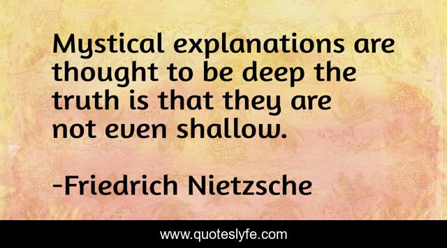 This page presents the quote "Mystical explanations are thought to be deep the truth is that they are not even shallow.". Author of this quote is Friedrich Nietzsche. This quote is about thought, truth is, deep,.