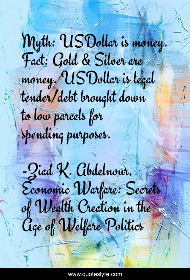 "Ziad K. Abdelnour, Economic Warfare: Secrets of Wealth Creation in the Age of Welfare Politics Quotes." Quoteslyfe.com, 2025. Tue. 09 Dec. 2025. <https://www.quoteslyfe.com/quote/Myth-USDollar-is-money-Fact-Gold-Silver-255359>.
