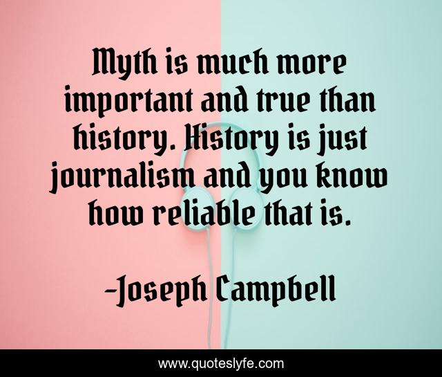 This page presents the quote "Myth is much more important and true than history. History is just journalism and you know how reliable that is.". Author of this quote is Joseph Campbell. This quote is about story, inspirational, myth, journalism, truth-telling, enthusiasm,.