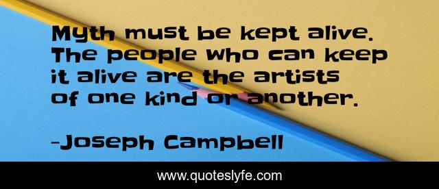 This page presents the quote "Myth must be kept alive. The people who can keep it alive are the artists of one kind or another.". Author of this quote is Joseph Campbell. This quote is about myths, artist,.
