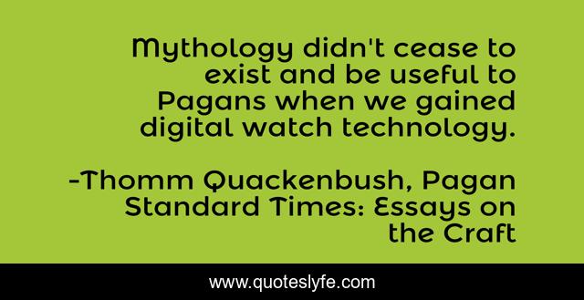 This page presents the quote "Mythology didn't cease to exist and be useful to Pagans when we gained digital watch technology.". Author of this quote is Thomm Quackenbush, Pagan Standard Times: Essays on the Craft. This quote is about archetypes, myth, digital-watch, paganism, mythology, pagan,.