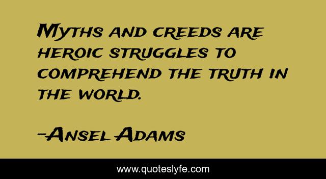 This page presents the quote "Myths and creeds are heroic struggles to comprehend the truth in the world.". Author of this quote is Ansel Adams. This quote is about world, struggles, heroic,.