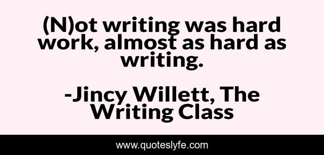 "Jincy Willett, The Writing Class Quotes." Quoteslyfe.com, 2025. Mon. 08 Dec. 2025. <https://www.quoteslyfe.com/quote/N-ot-writing-was-hard-work-almost-27694>.