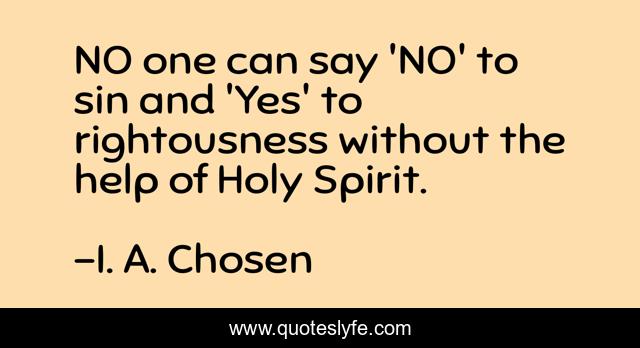 This page presents the quote "NO one can say 'NO' to sin and 'Yes' to rightousness without the help of Holy Spirit.". Author of this quote is I. A. Chosen. This quote is about sin, holy-spirit,.