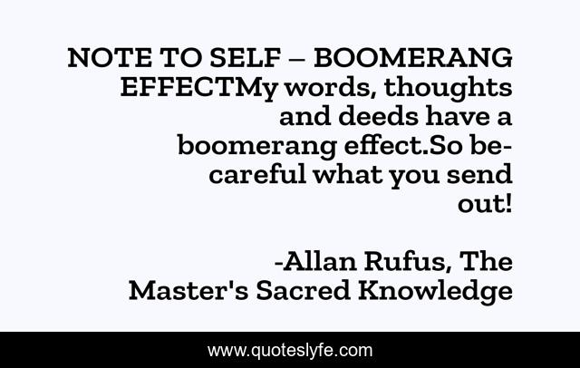 "Allan Rufus, The Master's Sacred Knowledge Quotes." Quoteslyfe.com, 2025. Sat. 06 Dec. 2025. <https://www.quoteslyfe.com/quote/NOTE-TO-SELF-BOOMERANG-EFFECTMy-words-thoughts-87941>.