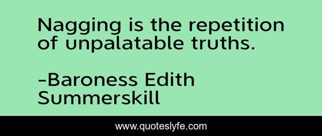 "Baroness Edith Summerskill Quotes." Quoteslyfe.com, 2025. Fri. 05 Dec. 2025. <https://www.quoteslyfe.com/quote/Nagging-is-the-repetition-of-unpalatable-truths-268029>.