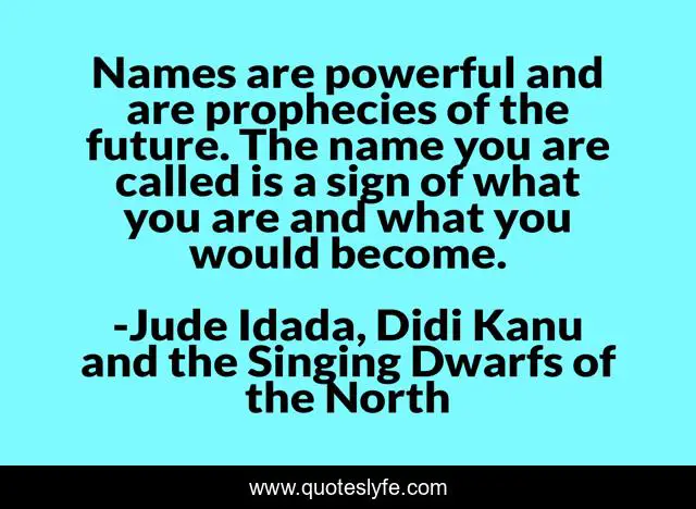 "Jude Idada, Didi Kanu and the Singing Dwarfs of the North Quotes." Quoteslyfe.com, 2025. Fri. 05 Dec. 2025. <https://www.quoteslyfe.com/quote/Names-are-powerful-and-are-prophecies-of-107328>.