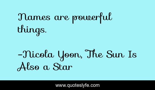 "Nicola Yoon, The Sun Is Also a Star Quotes." Quoteslyfe.com, 2025. Mon. 08 Dec. 2025. <https://www.quoteslyfe.com/quote/Names-are-powerful-things-31384>.