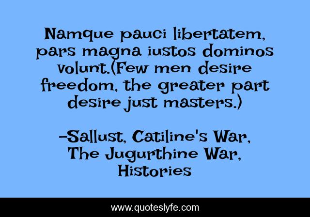 "Sallust, Catiline's War, The Jugurthine War, Histories Quotes." Quoteslyfe.com, 2025. Sat. 06 Dec. 2025. <https://www.quoteslyfe.com/quote/Namque-pauci-libertatem-pars-magna-iustos-dominos-71452>.