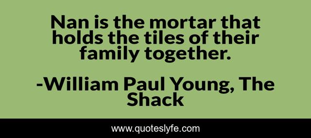 This page presents the quote "Nan is the mortar that holds the tiles of their family together.". Author of this quote is William Paul Young, The Shack. This quote is about family-relationships, family, mothers,.