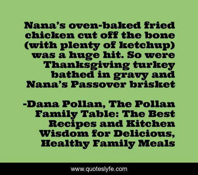"Dana Pollan, The Pollan Family Table: The Best Recipes and Kitchen Wisdom for Delicious, Healthy Family Meals Quotes." Quoteslyfe.com, 2025. Sun. 07 Dec. 2025. <https://www.quoteslyfe.com/quote/Nana-s-oven-baked-fried-chicken-cut-168218>.