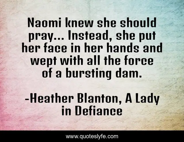 This page presents the quote "Naomi knew she should pray... Instead, she put her face in her hands and wept with all the force of a bursting dam.". Author of this quote is Heather Blanton, A Lady in Defiance. This quote is about enthusiasm, christianity-faith, christian-living, inspirational, western-historical-romance,.
