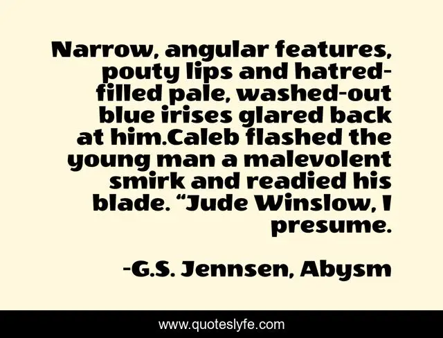 "G.S. Jennsen, Abysm Quotes." Quoteslyfe.com, 2025. Fri. 05 Dec. 2025. <https://www.quoteslyfe.com/quote/Narrow-angular-features-pouty-lips-and-hatred-151579>.