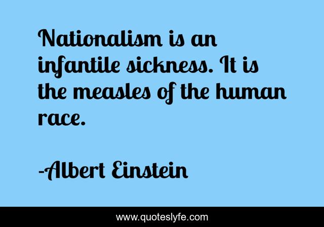 This page presents the quote "Nationalism is an infantile sickness. It is the measles of the human race.". Author of this quote is Albert Einstein. .