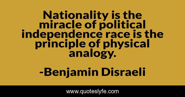 "Benjamin Disraeli Quotes." Quoteslyfe.com, 2025. Sat. 06 Dec. 2025. <https://www.quoteslyfe.com/quote/Nationality-is-the-miracle-of-political-independence-299773>.