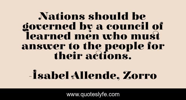 "Isabel Allende, Zorro Quotes." Quoteslyfe.com, 2025. Sat. 06 Dec. 2025. <https://www.quoteslyfe.com/quote/Nations-should-be-governed-by-a-council-70251>.