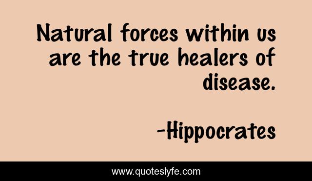 This page presents the quote "Natural forces within us are the true healers of disease.". Author of this quote is Hippocrates. This quote is about true, within, natural,.