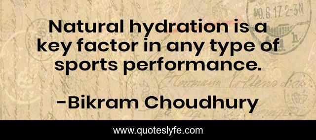 This page presents the quote "Natural hydration is a key factor in any type of sports performance.". Author of this quote is Bikram Choudhury. This quote is about performance, natural, key,.