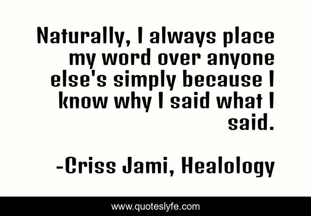 "Criss Jami, Healology Quotes." Quoteslyfe.com, 2025. Fri. 05 Dec. 2025. <https://www.quoteslyfe.com/quote/Naturally-I-always-place-my-word-over-111344>.