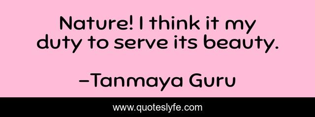 This page presents the quote "Nature! I think it my duty to serve its beauty.". Author of this quote is Tanmaya Guru. .